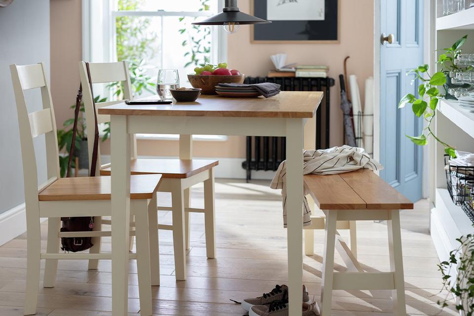 The key is to customize the piece to fit the space and allow for traffic flow — around 36 inches — on all sides. Ships free orders over $39. Paneled walls add architectural character. There is such a variety of styles, colors, and variations, outfitting the kitchen or dining room with complementary kitchen furniture is lots of fun. Yes, you can view all of our dining sets in rectangle, round, oval, square, or boat shape.